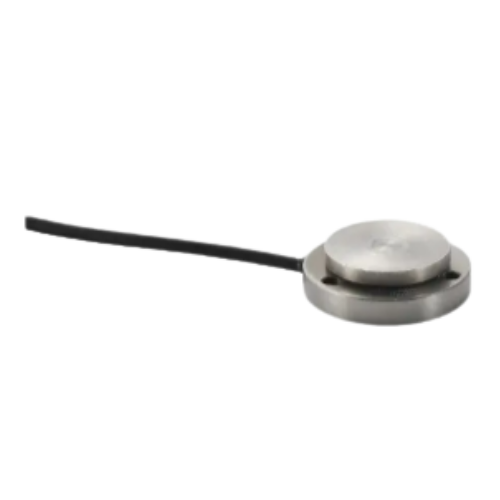 This thin, flat compression load cell has a capacity of 500 N and features IP64-rated protection against water and dust. Its wide force-receiving surface makes it suitable for testing soft or spherical samples.