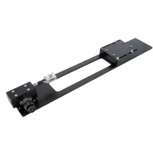 This custom horizontal test stand is built for tension testing of samples like films, optical fibers, and cables. It features a fine adjustment knob that lets you precisely position the force gauge for stable and accurate measurements. In addition, two different knobs are provided to support both short and long movement requirements, depending on the test setup.