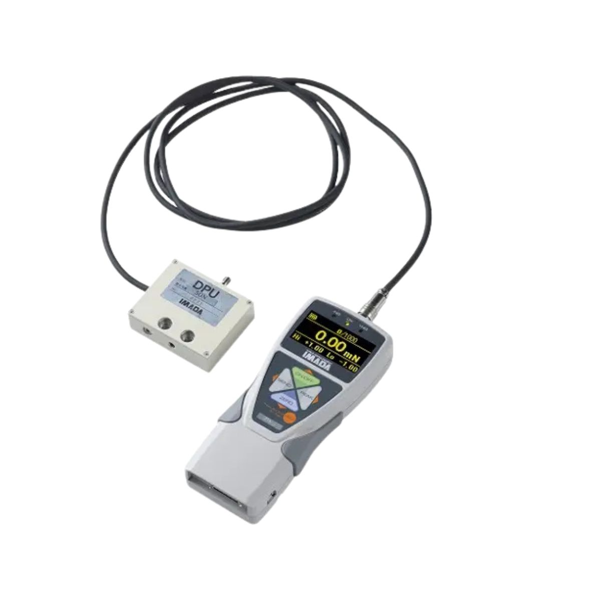 This force gauge can be used with a variety of load cells, which come in different shapes and specifications. Some of these include compact, waterproof, and wide-temperature options, as well as pen-type designs.