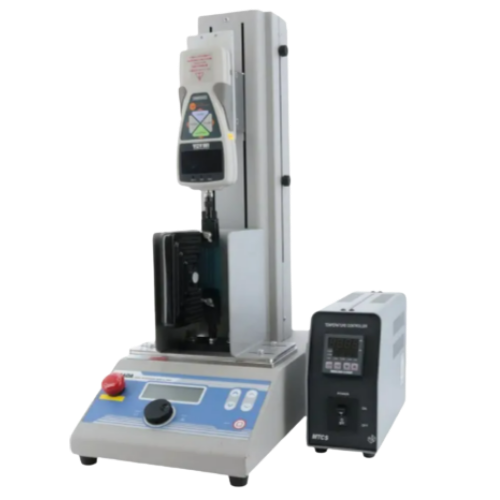 This customized tension and compression tester uses a far-infrared heater to warm samples to the required temperature. It offers a cost-effective solution for force testing applications that need controlled heating.